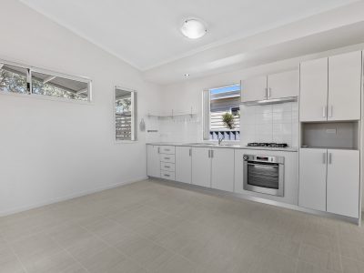 The open-plan kitchen and living area is light-filled and functional, featuring a split-system air conditioner and ceiling fan for year-round comfort. The good-sized bedroom includes plenty of storage and its own ceiling fan.