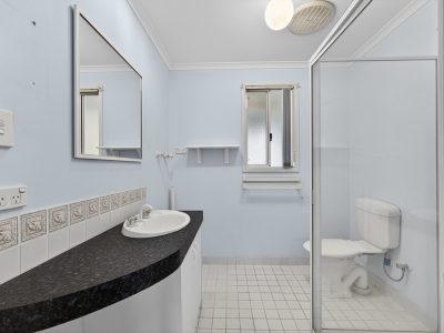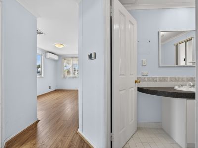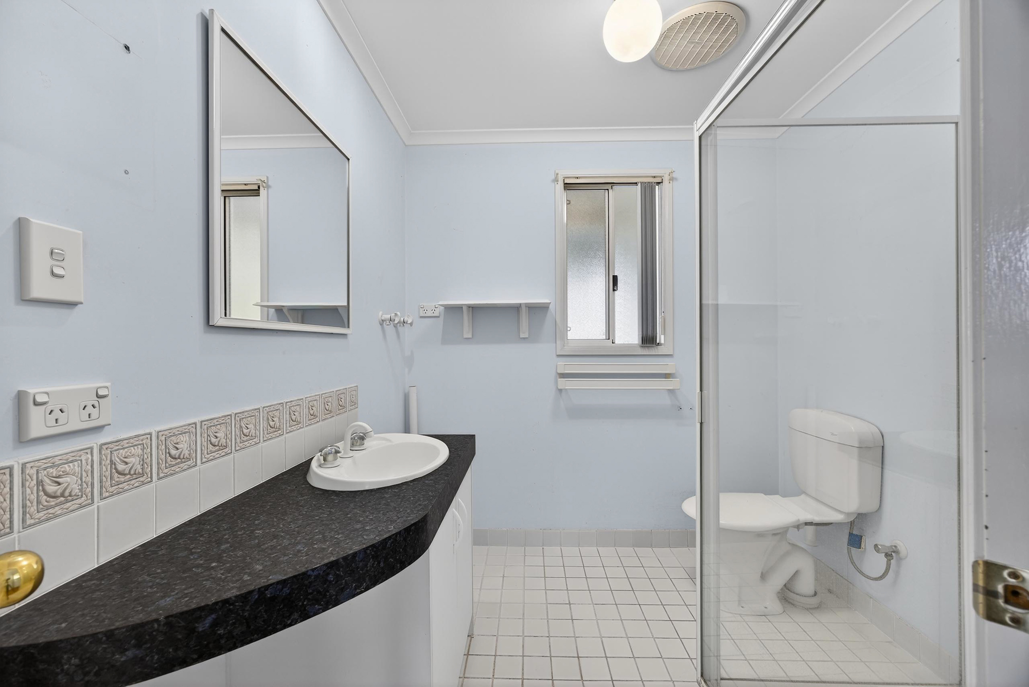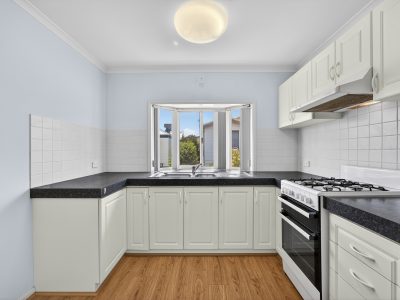 Both bedrooms are well-proportioned, with the master featuring built-in mirrored robes. The central bathroom is functional and includes storage and washing machine taps.